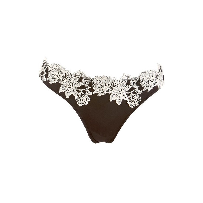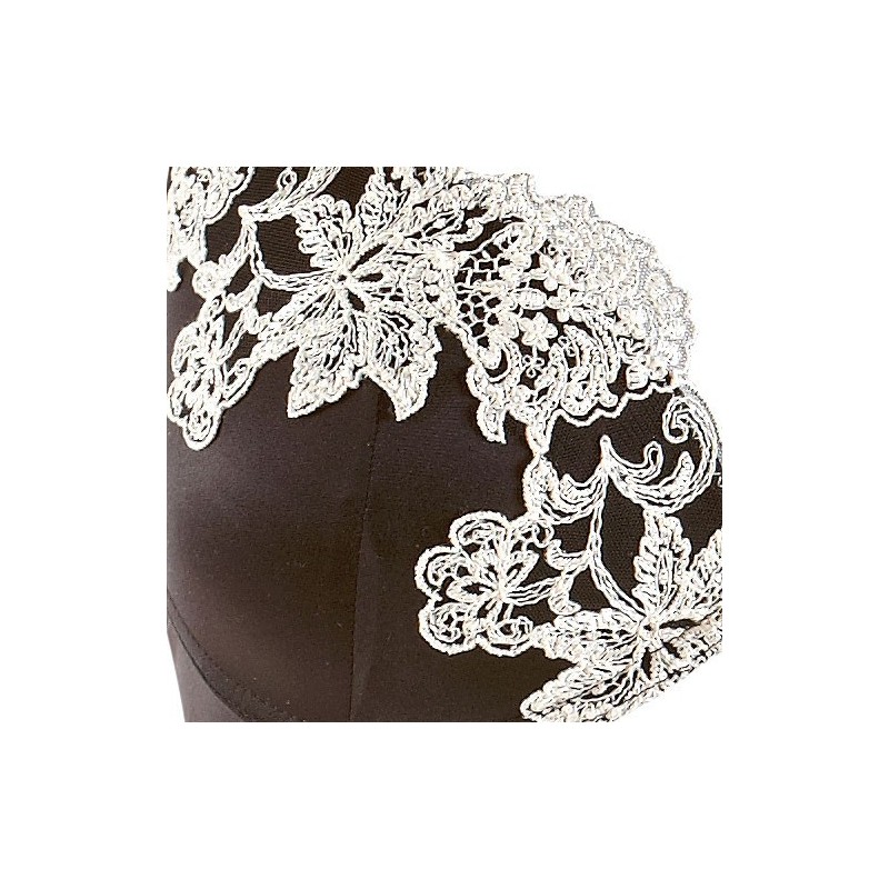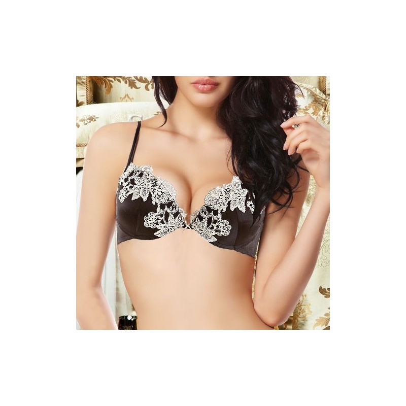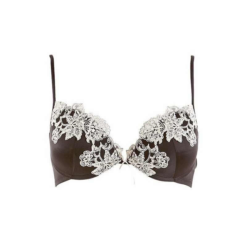 Ein traumhaftes Push-up-BH Model aus schwarzem elastischem Seidensatin und märchenhaften Champagne-Blumenstickereien.