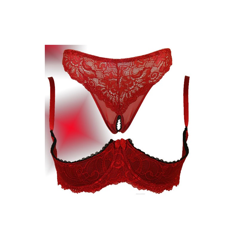 Ouvert Set besteht aus zarter roter Spitze