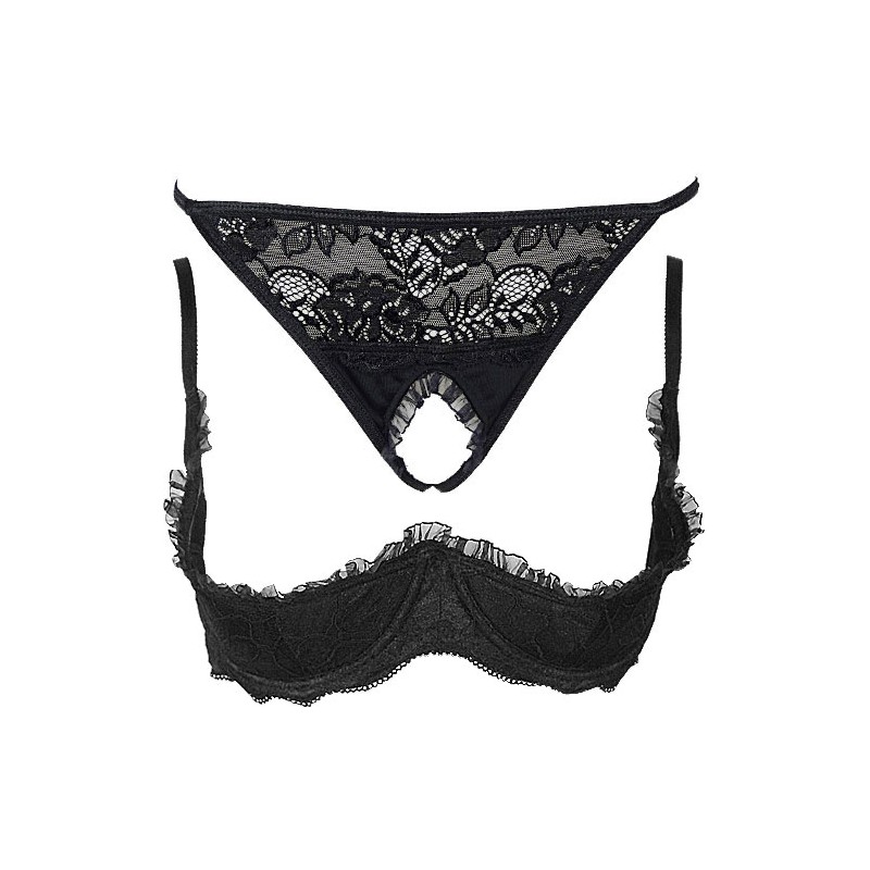 Reizvoller Büstenhebe-BH aus weicher, hochwertiger Spitze. Die Cup`s ouvert sind mit Bügeln unterlegt.